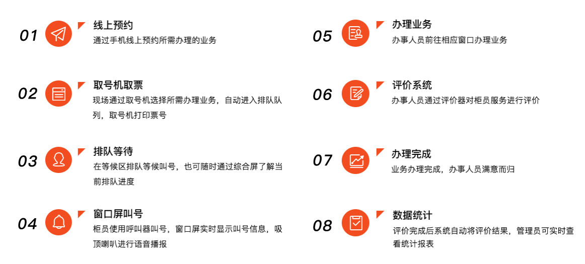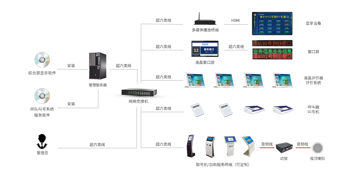 通過(guò)排隊(duì)叫號(hào)系統(tǒng),讓辦事人員有序排隊(duì)等候,避免窗口擁擠和排隊(duì),并且能合理的安排窗口服務(wù),減少辦事人員的等候時(shí)間,合理的安排辦理各種業(yè)務(wù),提高綜合管理水平。廣泛應(yīng)用于政務(wù)大廳、銀行、醫(yī)院(分診、藥房、體檢等科室)、街道服務(wù)中心、辦事大廳、營(yíng)業(yè)廳、派出所、工商局、稅務(wù)局、社保局、車管所和交管局等場(chǎng)景。