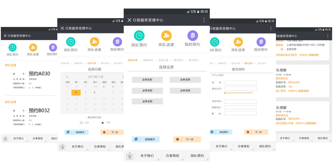 辦事群眾可通過(guò)微信公眾號(hào)進(jìn)行業(yè)務(wù)辦理、預(yù)約取號(hào)、資料填寫、排隊(duì)進(jìn)度查詢等功能。