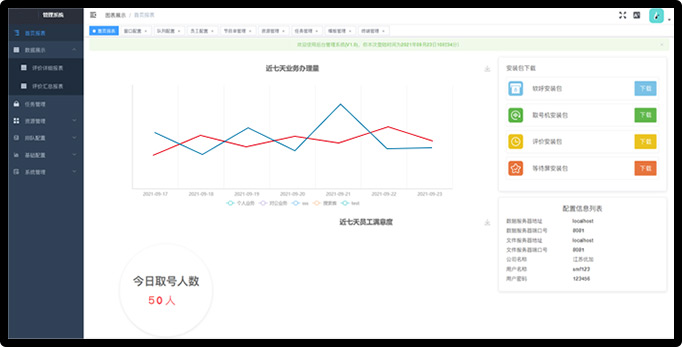 平臺(tái)功能包括排隊(duì)叫號(hào)數(shù)據(jù)統(tǒng)計(jì)、評(píng)價(jià)交互系統(tǒng)、窗口屏幕管理、員工配置管理、終端硬件監(jiān)控運(yùn)維、自助服務(wù)系統(tǒng)、 電子樣表統(tǒng)計(jì)系統(tǒng)、第三方數(shù)據(jù)對(duì)接模塊。