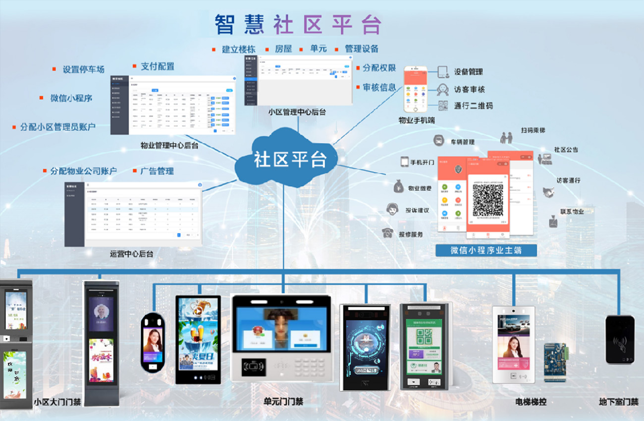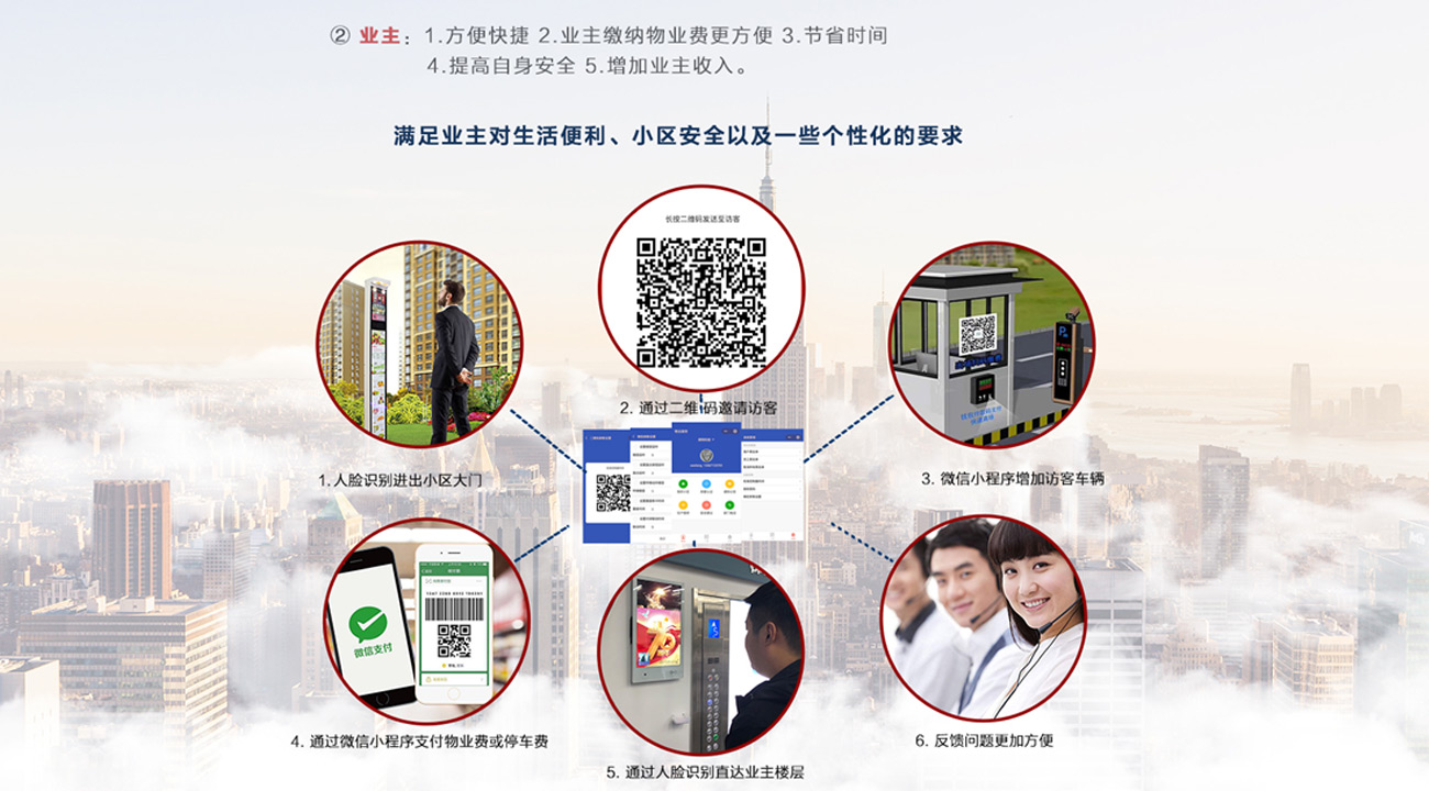 利用物聯(lián)網(wǎng)和移動互聯(lián)網(wǎng)技術(shù),對小區(qū)門禁、停車管理、電梯管理、社區(qū)安防及家居智能化等進行高度整合及統(tǒng)一平臺,提供高質(zhì)量的物業(yè)和社區(qū)O2O服務。